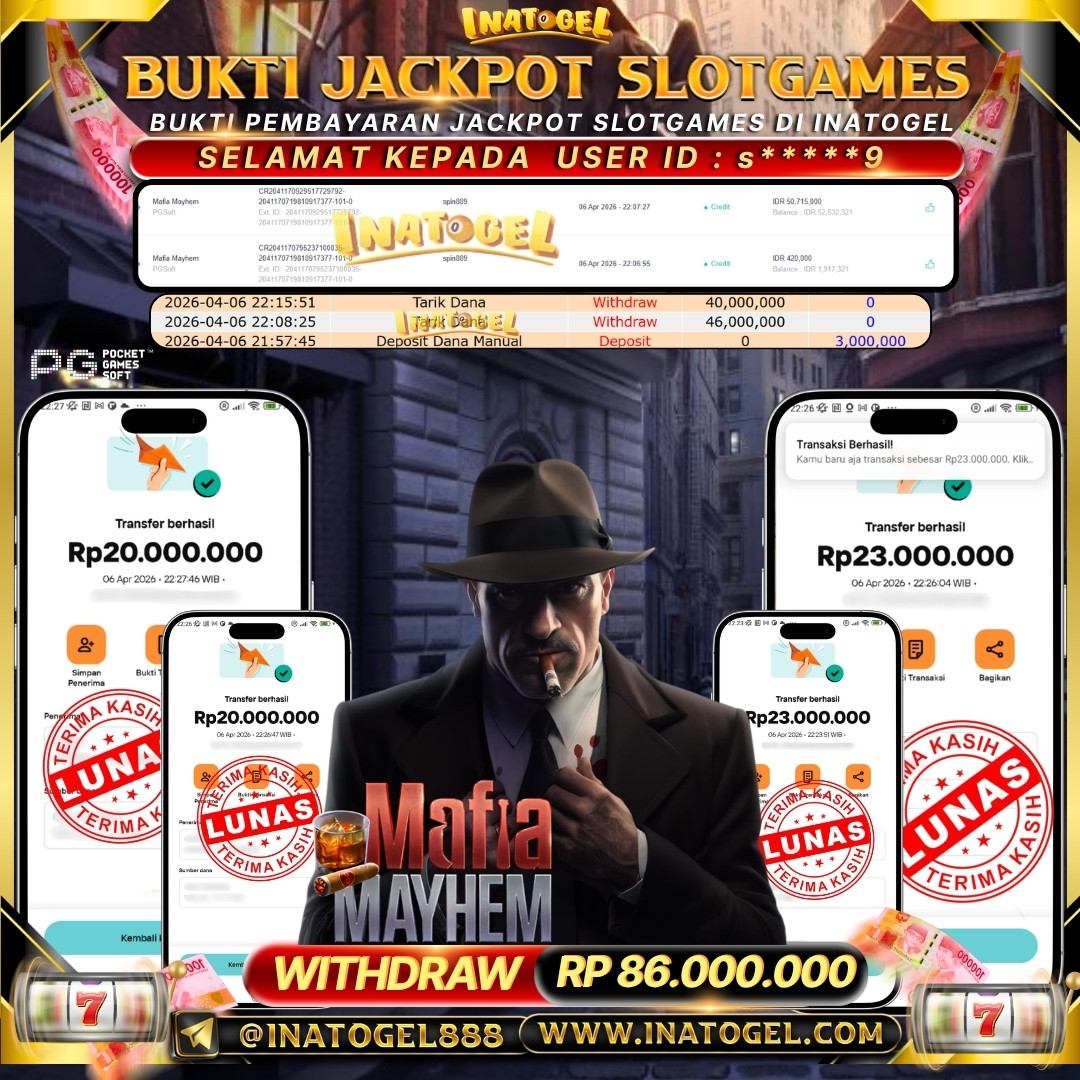 Inatogel Jackpot Slot Games Mafia Mayhem Rp86,000,000
