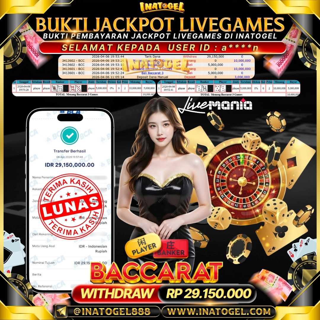 Inatogel Jackpot Live Game Baccarat 3 Games Rp 29,150,000