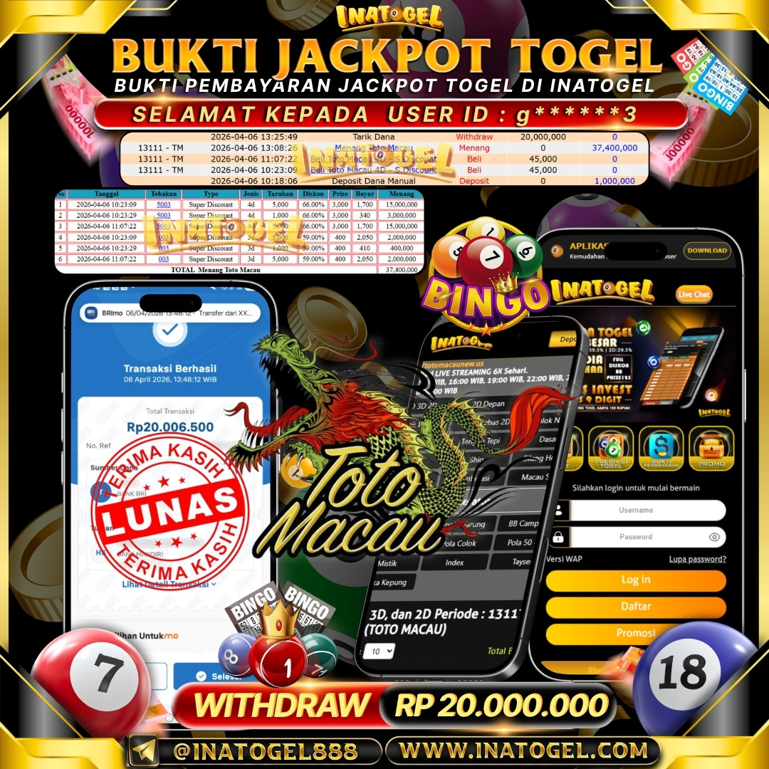 Inatogel Jackpot Togel Toto Macau Rp 20,000,000