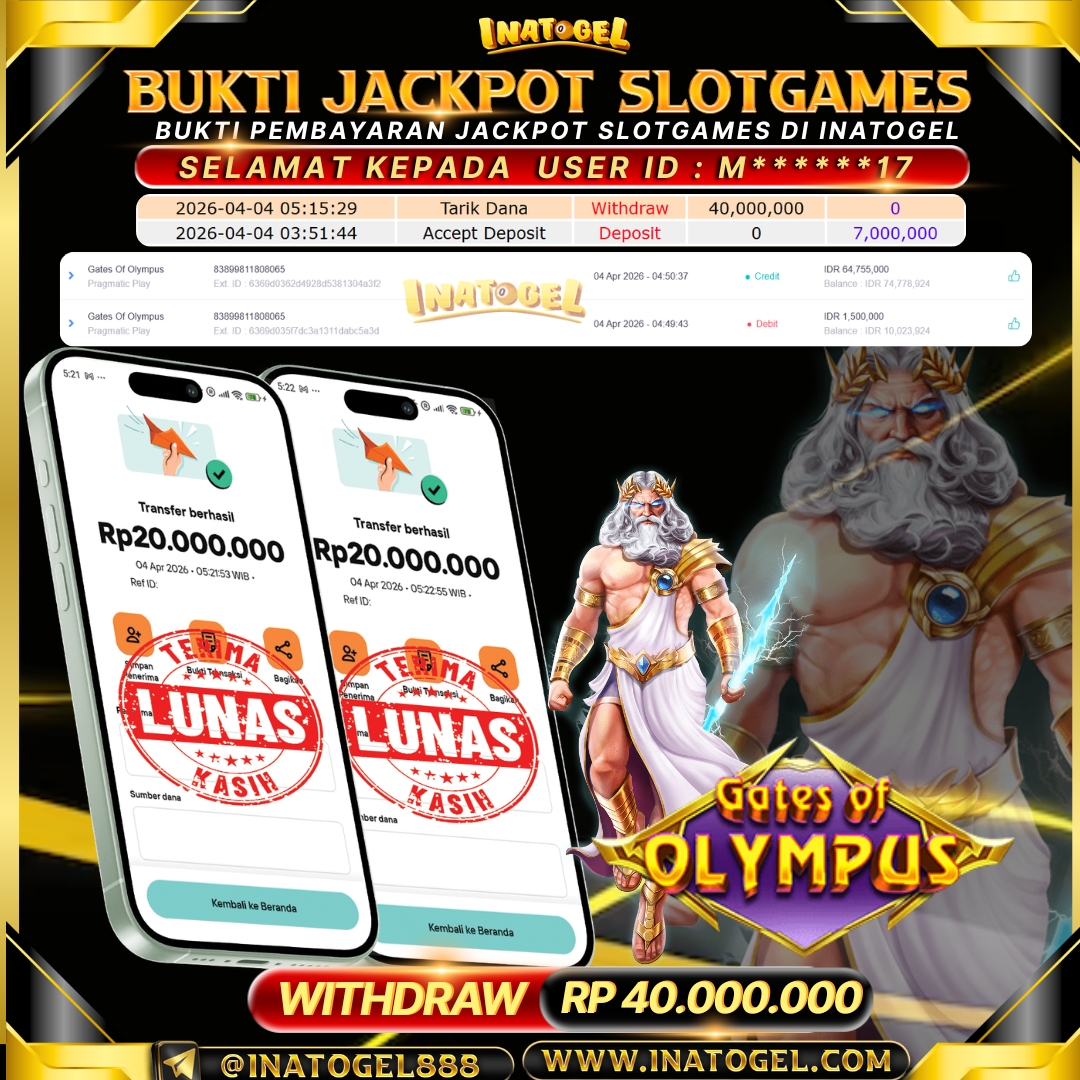 Inatogel Jackpot Slot Games Gates Of Olympus Rp 40,000,000