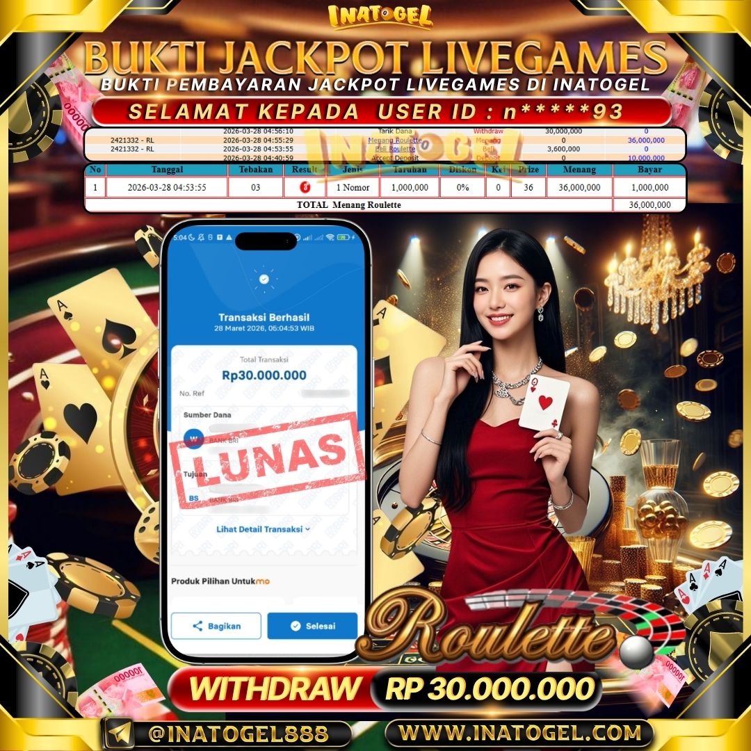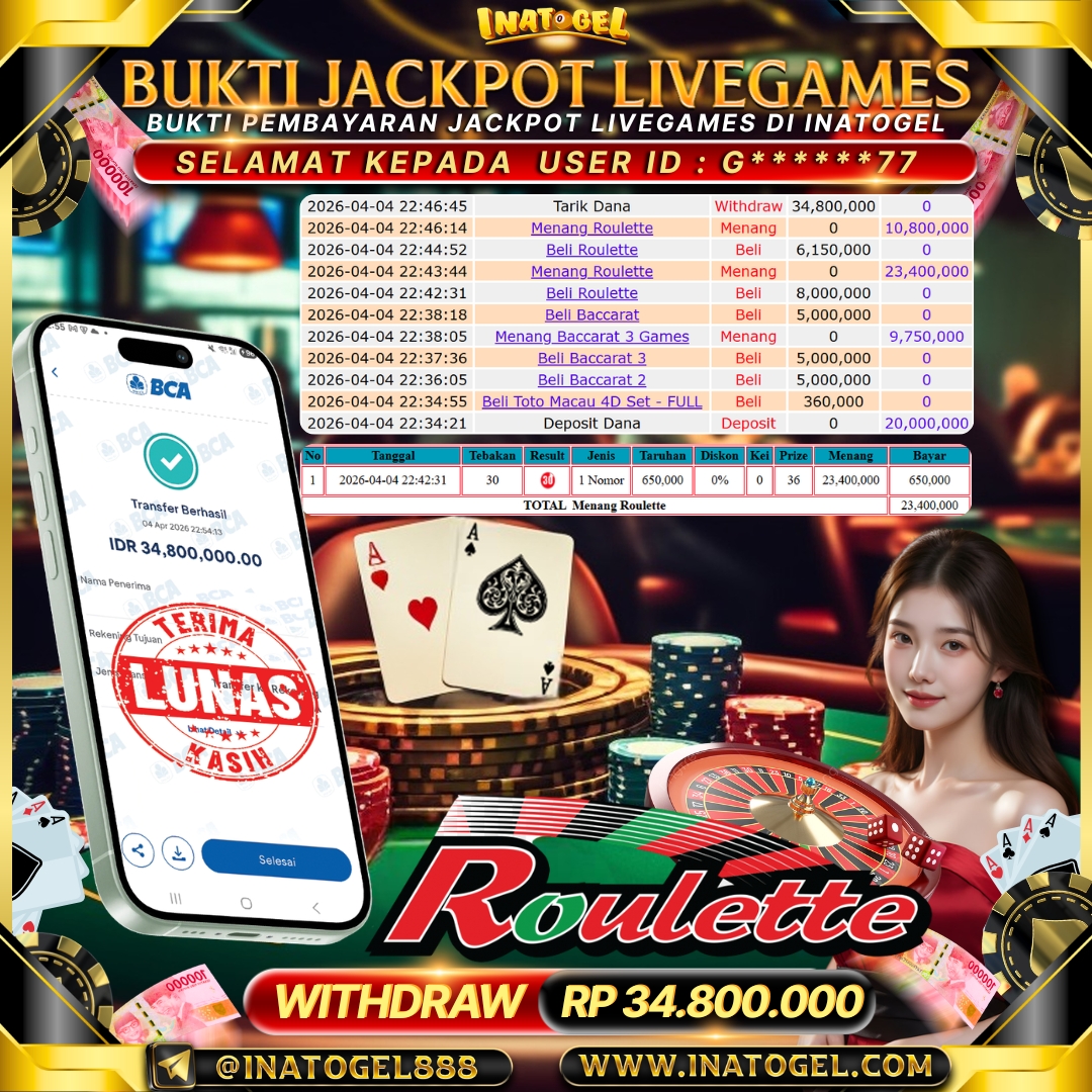 Inatogel Jackpot Live Game Menang Roulette Rp34,800 ,000