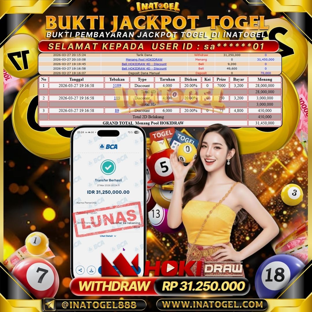Inatogel Jackpot Togel HOKIDRAW Rp 31,350,000