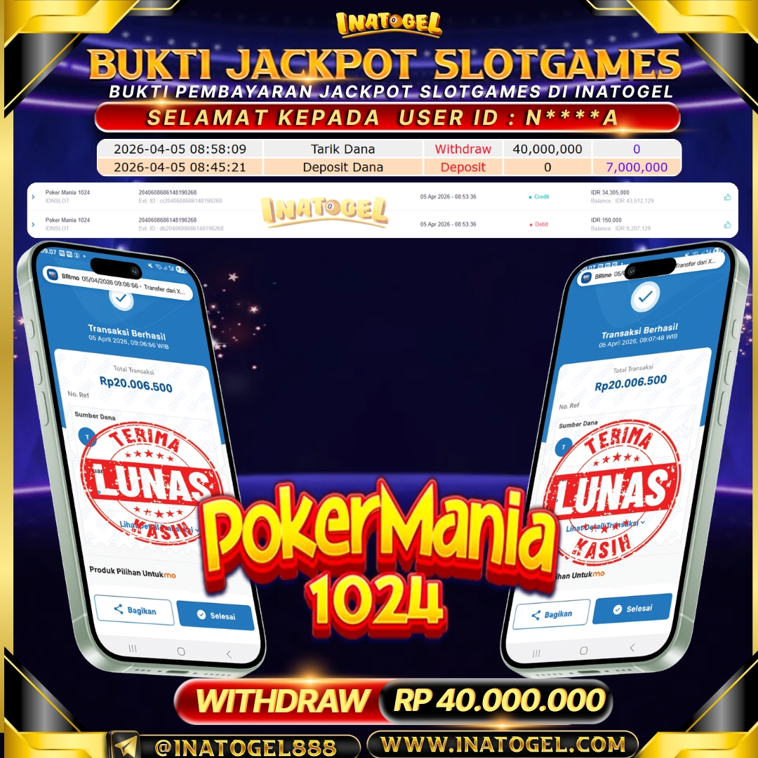 Inatogel Jackpot Slot Games Poker Mania 1024 Rp 40,000,000