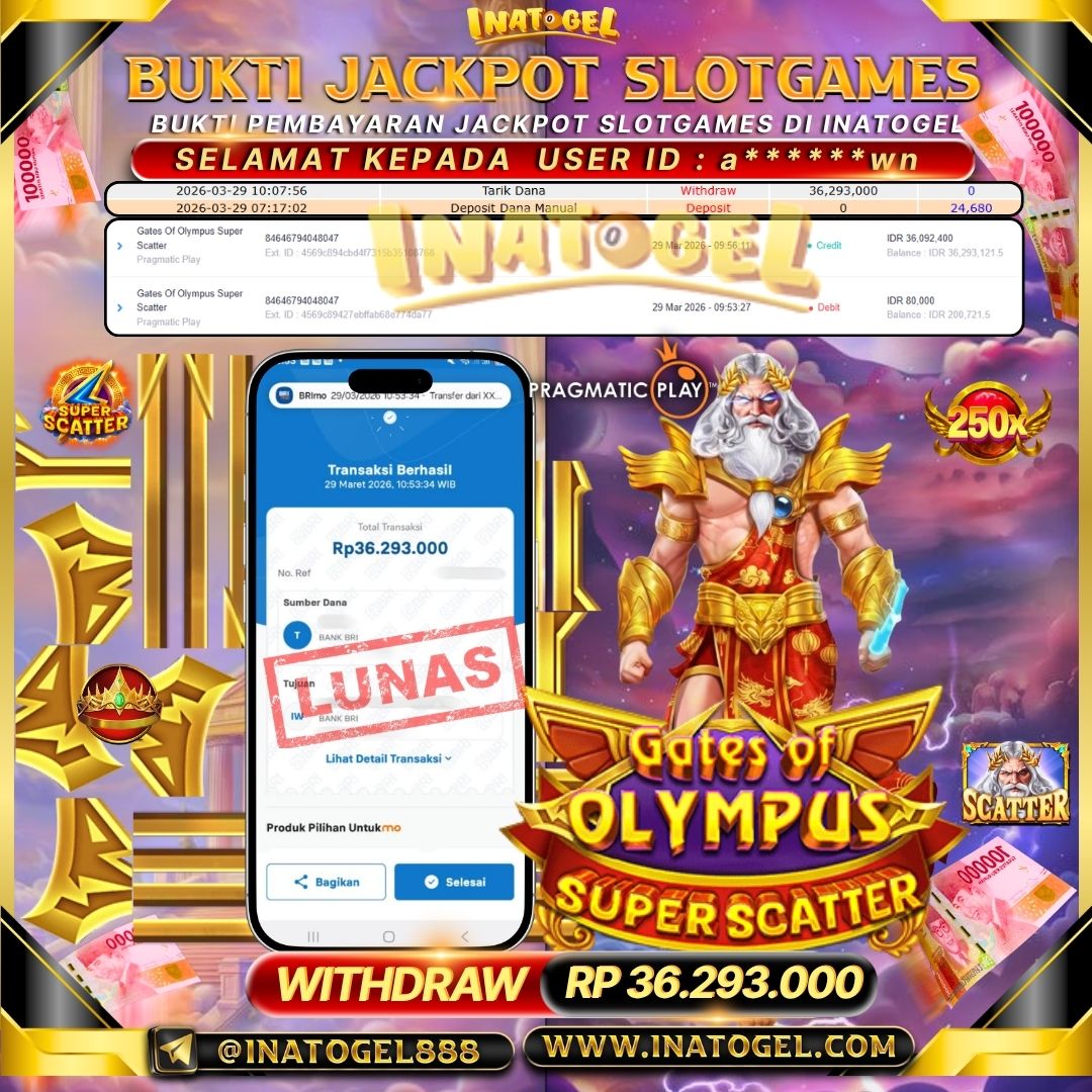 Inatogel Jackpot SlotGame Gates Of Olympus Super Scatter Rp36,293,000