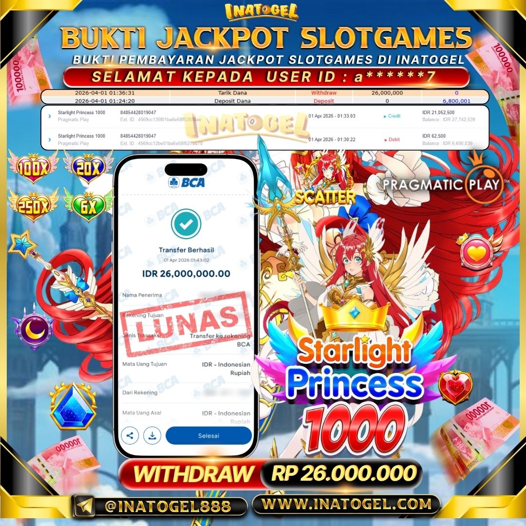 Inatogel Jackpot SlotGame Starlight Princess 1000 Rp.26,000,000