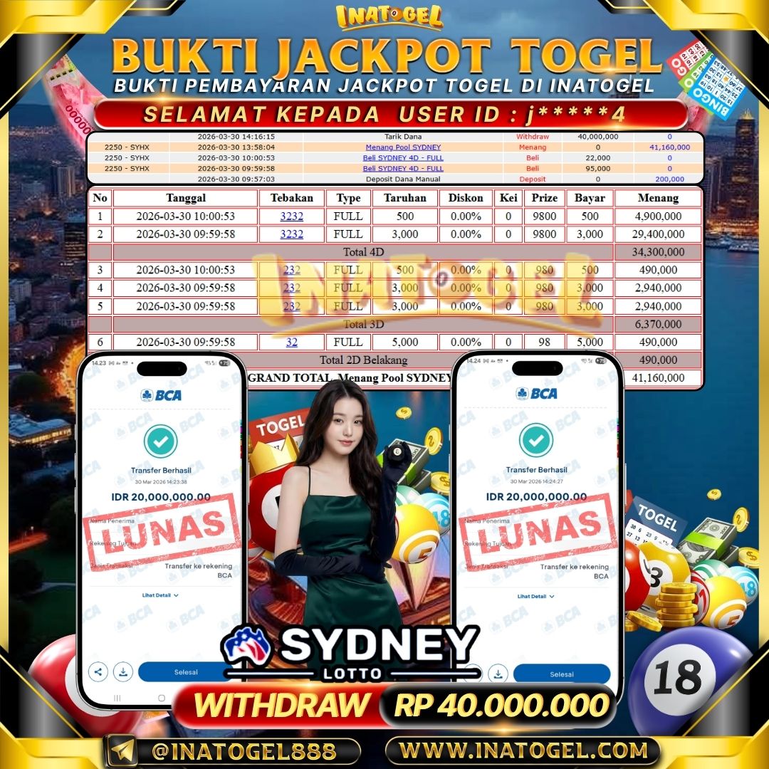 Inatogel Jackpot Togel Sydney Lotto Rp 40,000,000