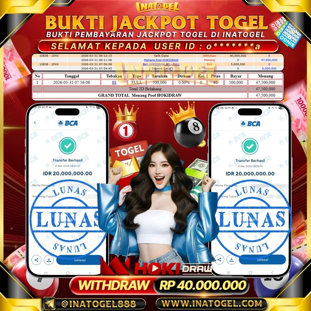 Inatogel Jackpot Togel HOKIDRAW Rp 40,000,000
