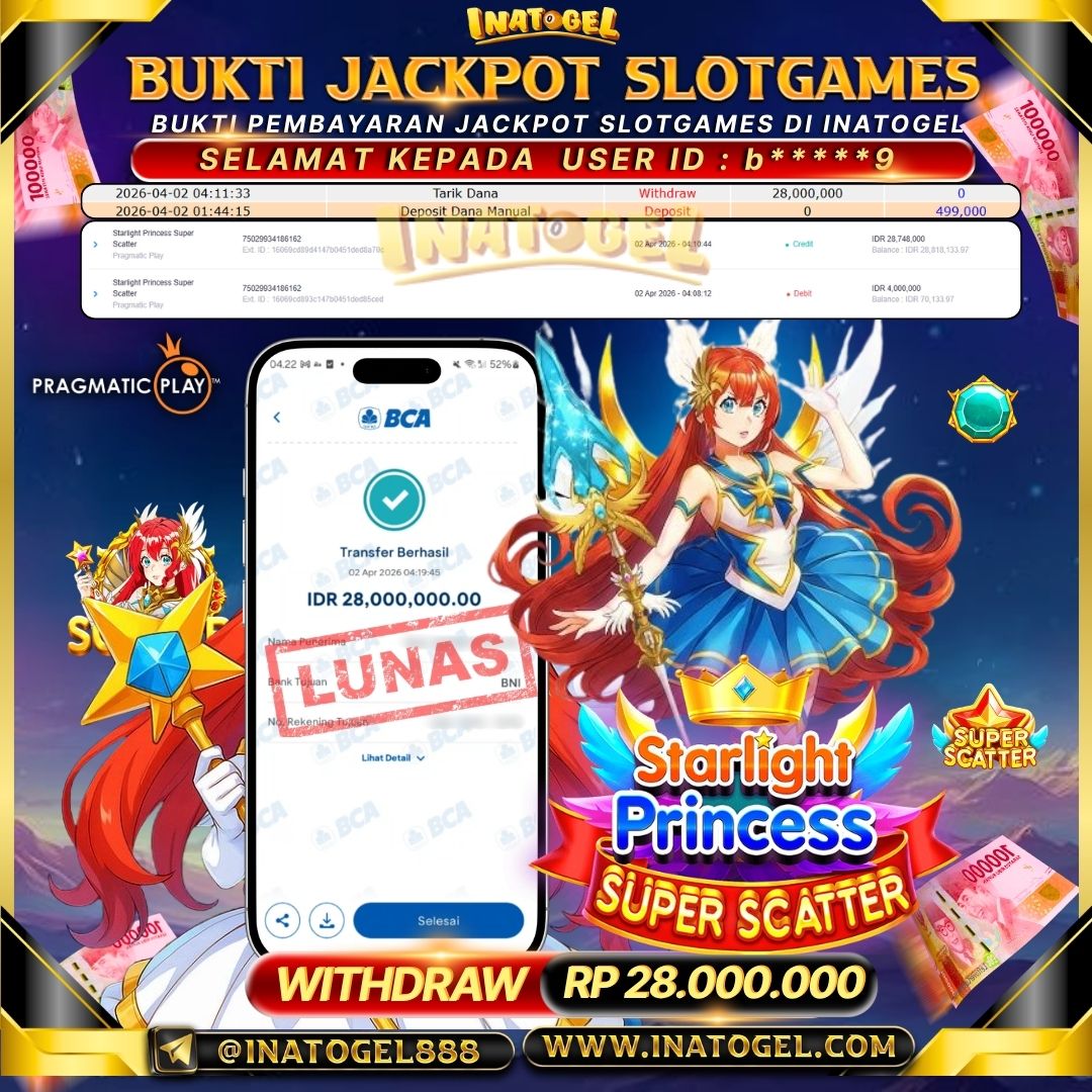 Inatogel Jackpot Slot Games Starlight Princess Super Scatter Rp 28,000,000