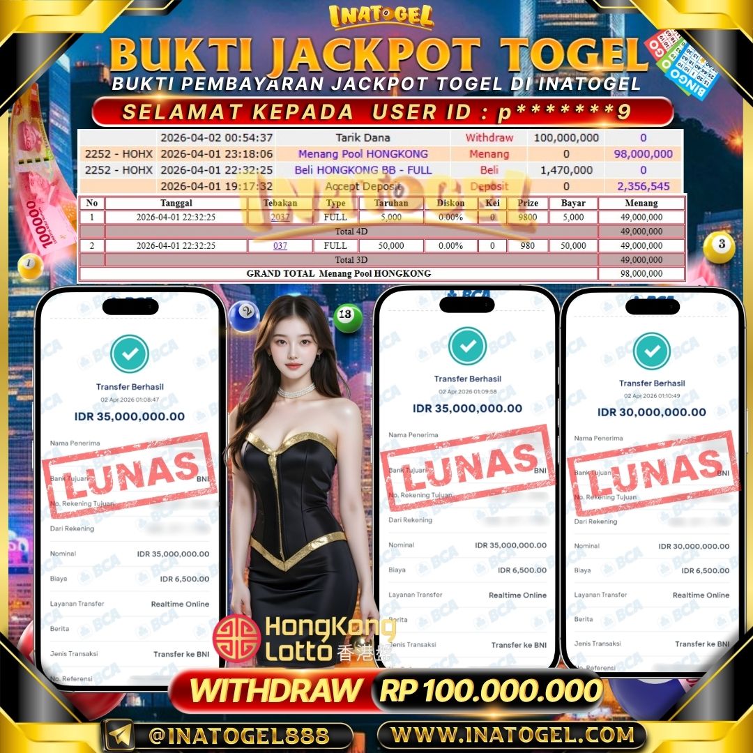 Inatogel Jackpot Togel Hongkong Lotto Rp 100,000,000
