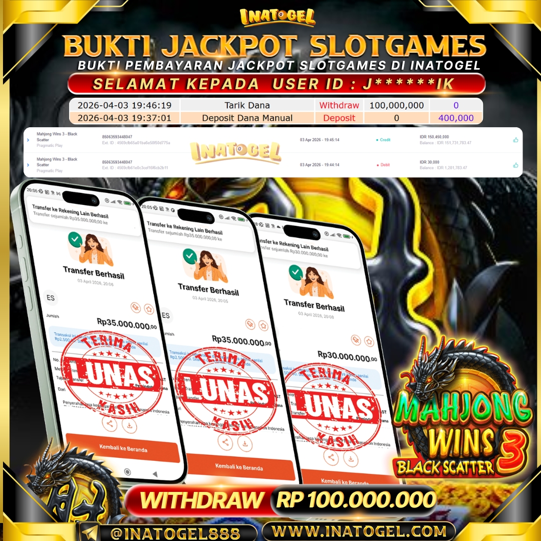 Inatogel Jackpot Slot Games Mahjong Ways Rp 100,000,000