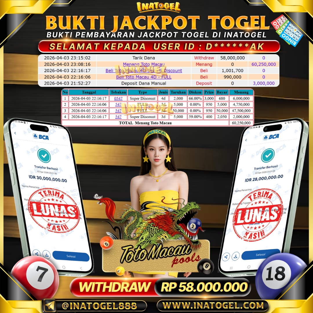 Inatogel Jackpot Togel Toto Macau Rp 58,000,000