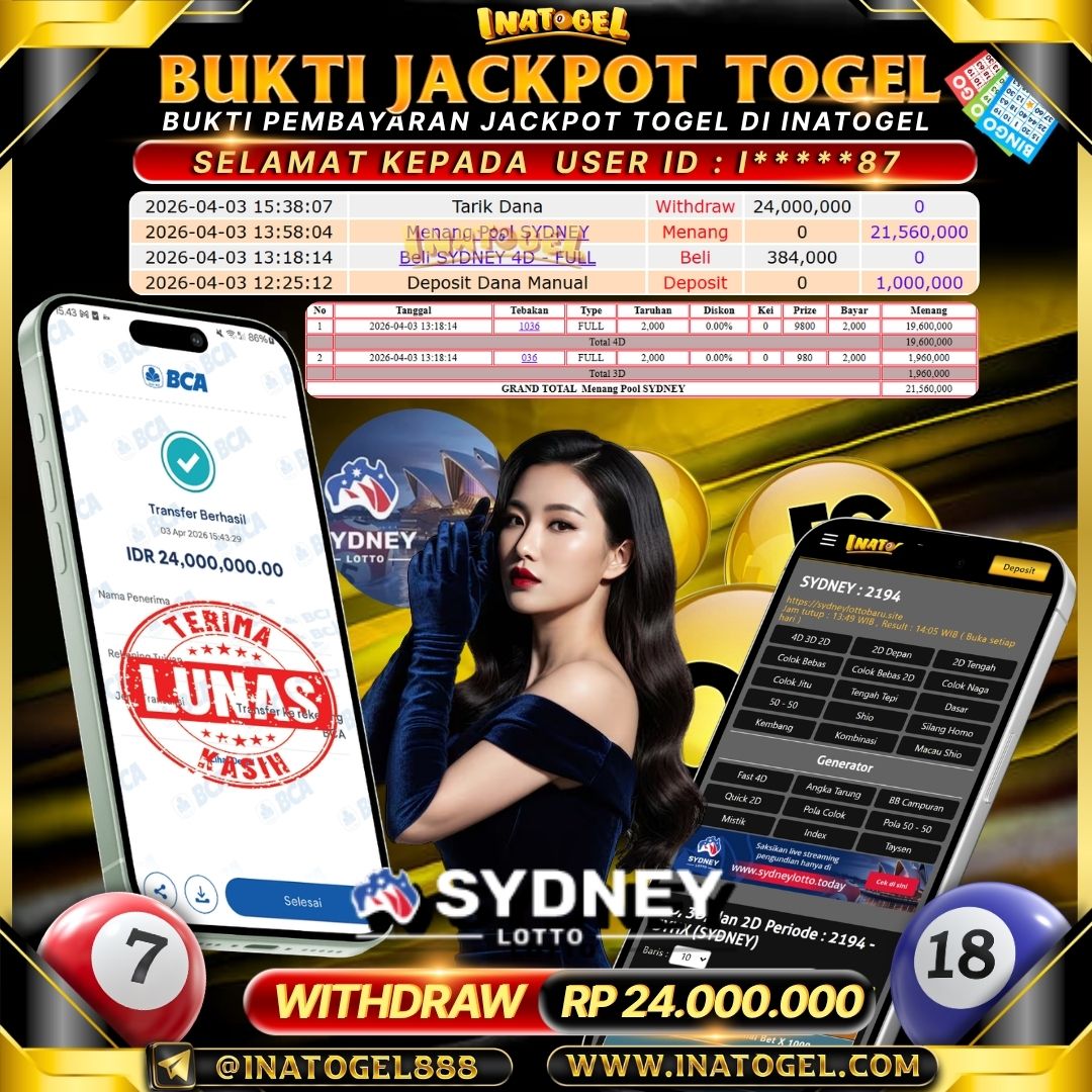 Inatogel Jackpot Togel Sydney Lotto Rp 24,000,000