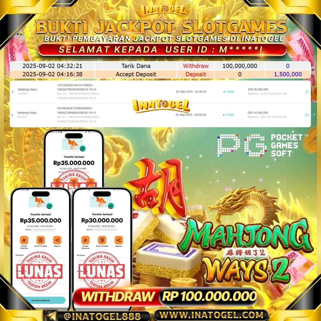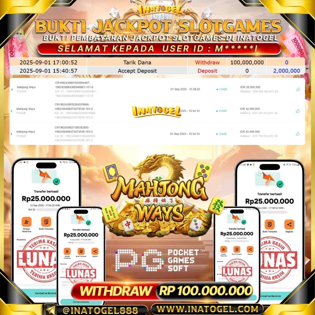Inatogel Jackpot SlotGame Mahjong Ways Rp100,000,000