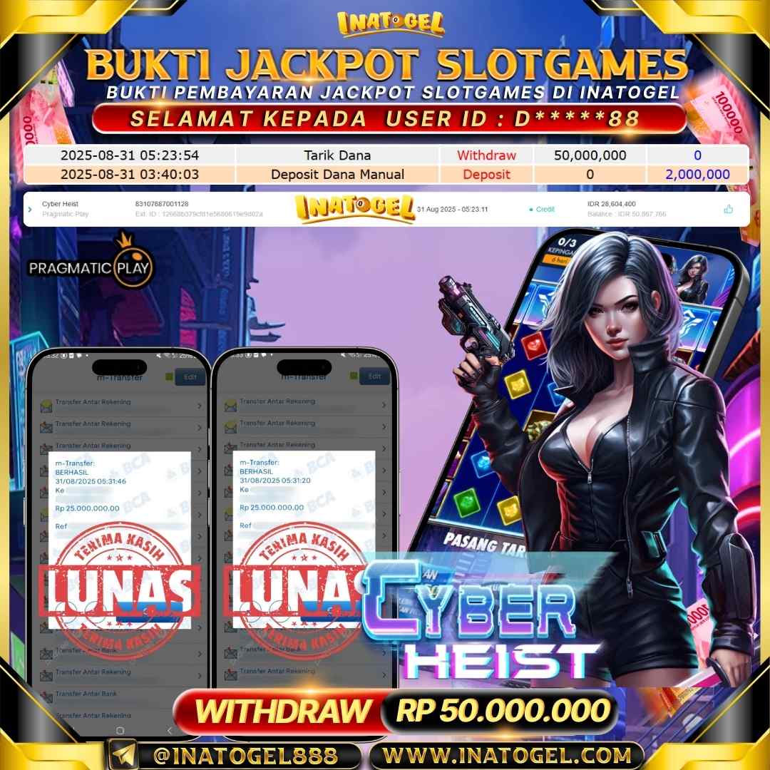 Inatogel Jackpot SlotGame Cyber Heist Rp50,000,000
