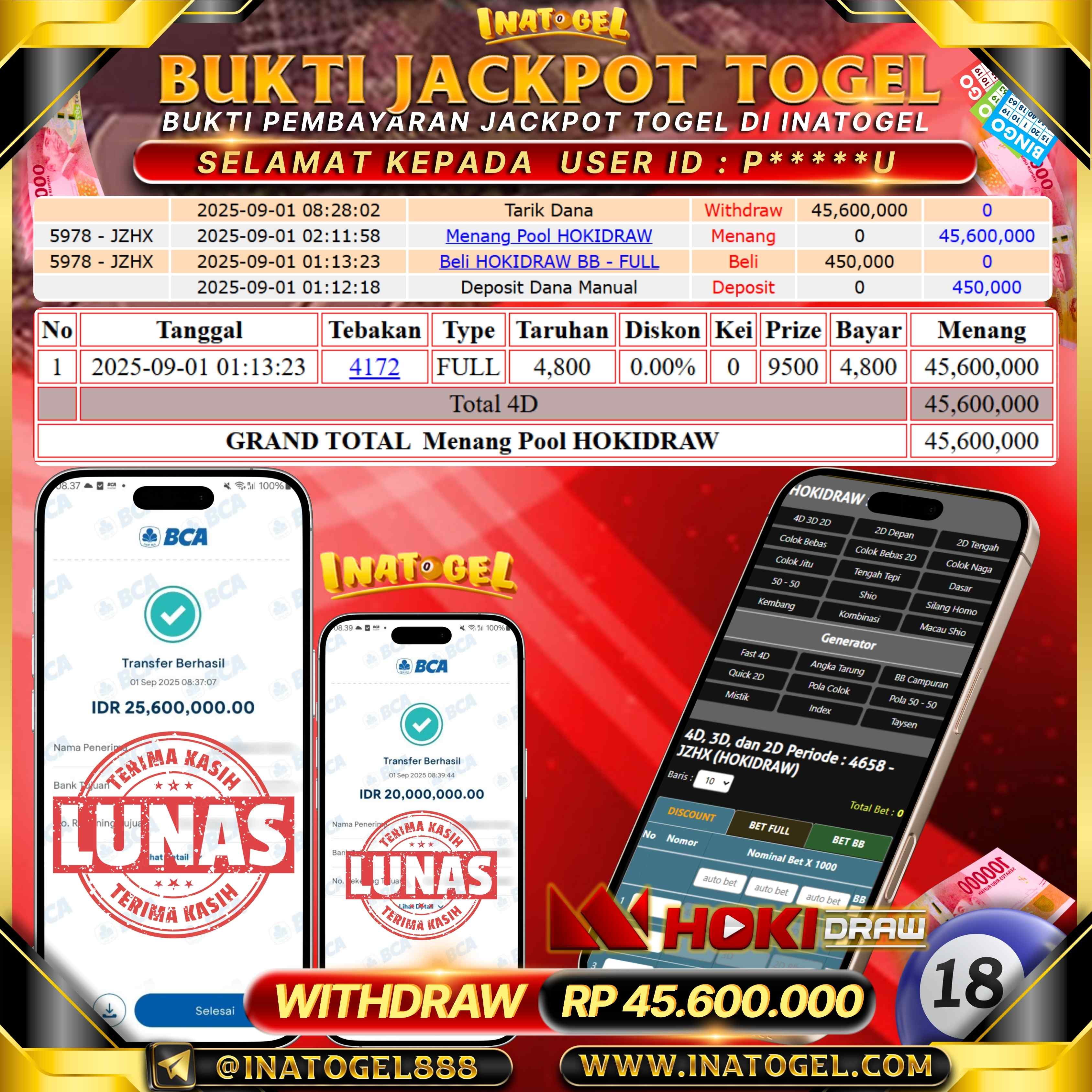 Inatogel Jackpot Togel Hoki Draw Rp45,600,000