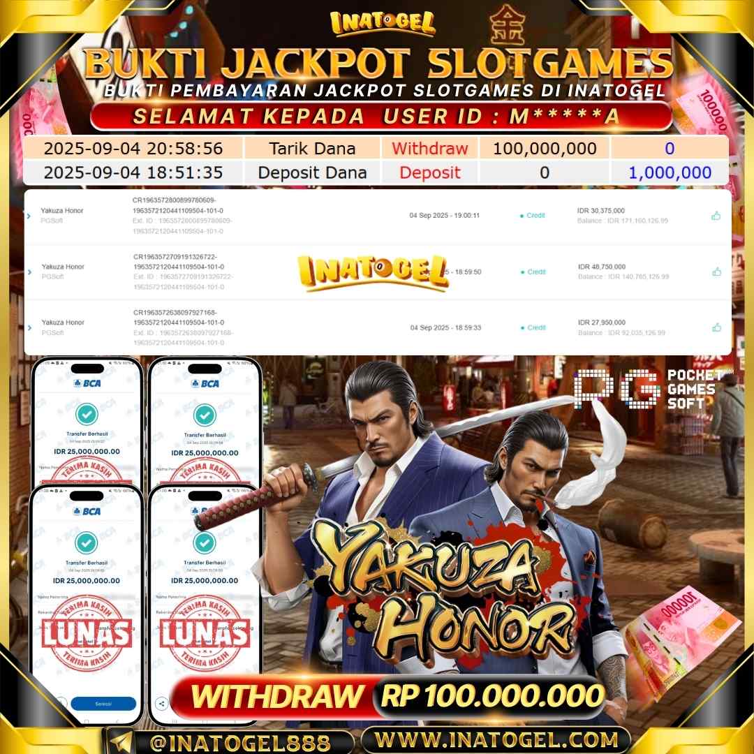 Inatogel Jackpot SlotGame Yakuza Honor Rp100,000,000