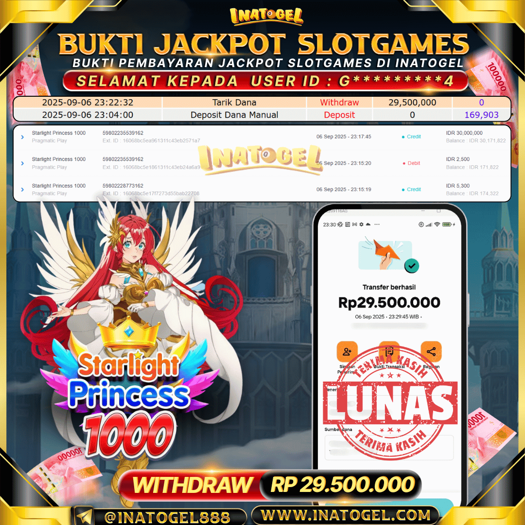 Inatogel Jackpot SlotGame Starlight Princess 1000 Rp29,500,000