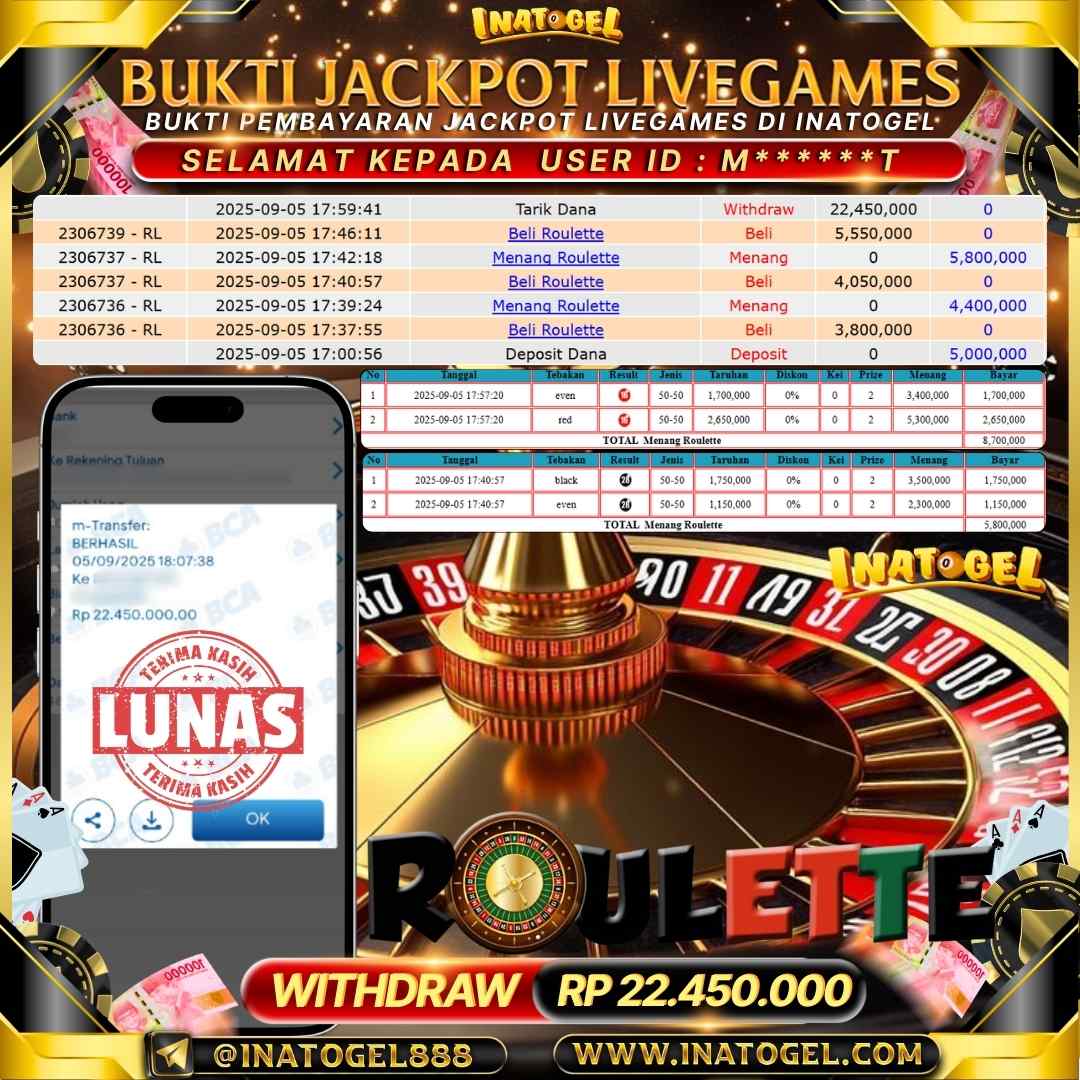 Inatogel Jackpot LiveGame Roulette Rp22,450,000