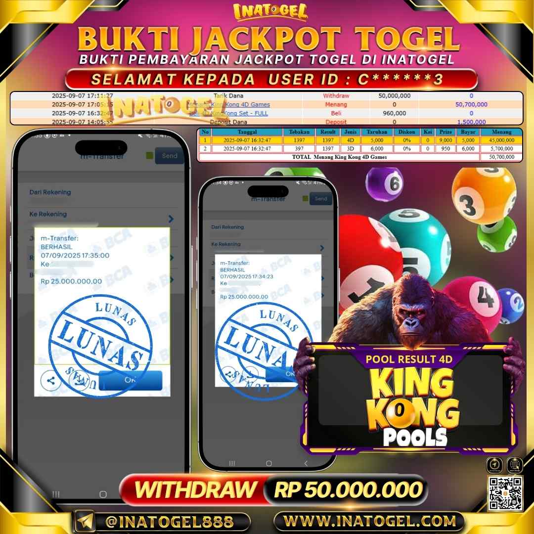 Inatogel Jackpot TOGEL KINGKONG 4D Rp50,000,000