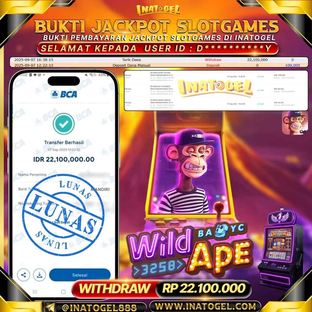 Inatogel Jackpot SlotGame WILD APE Rp22,100,000