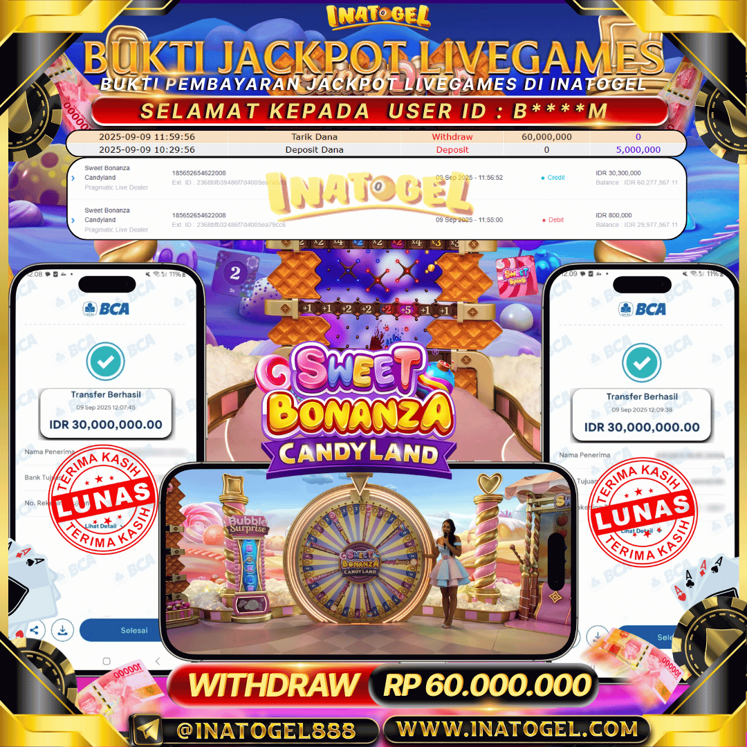 Inatogel Jackpot LiveGame PP Live Sweet Bonanza CandyLand Rp60,000,000