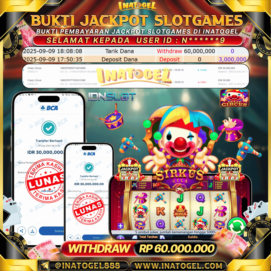 Inatogel Jackpot SlotGame Crazy Circus Rp60,000,000