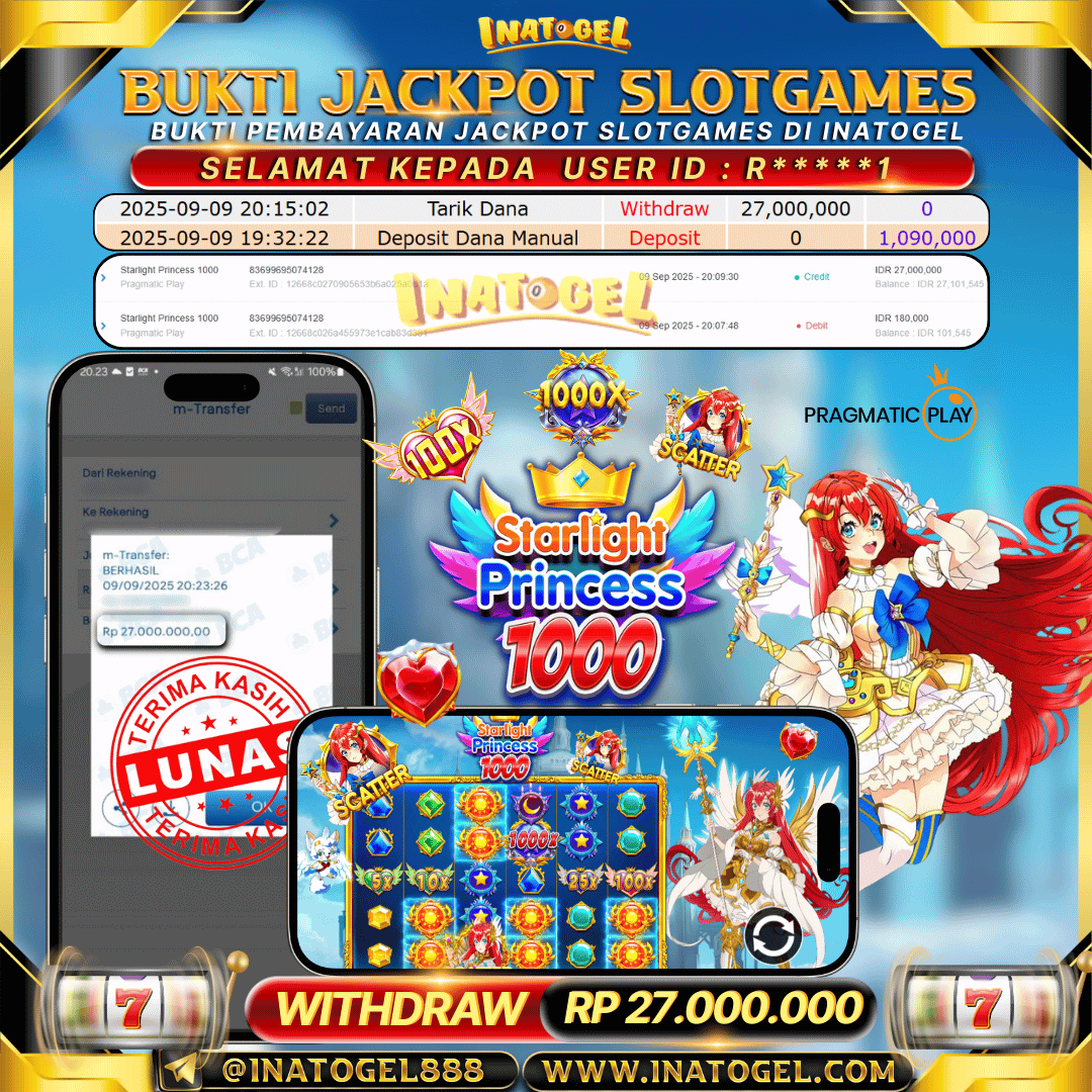 Inatogel Jackpot SlotGame Starlight Princess 1000 Rp27,000,000