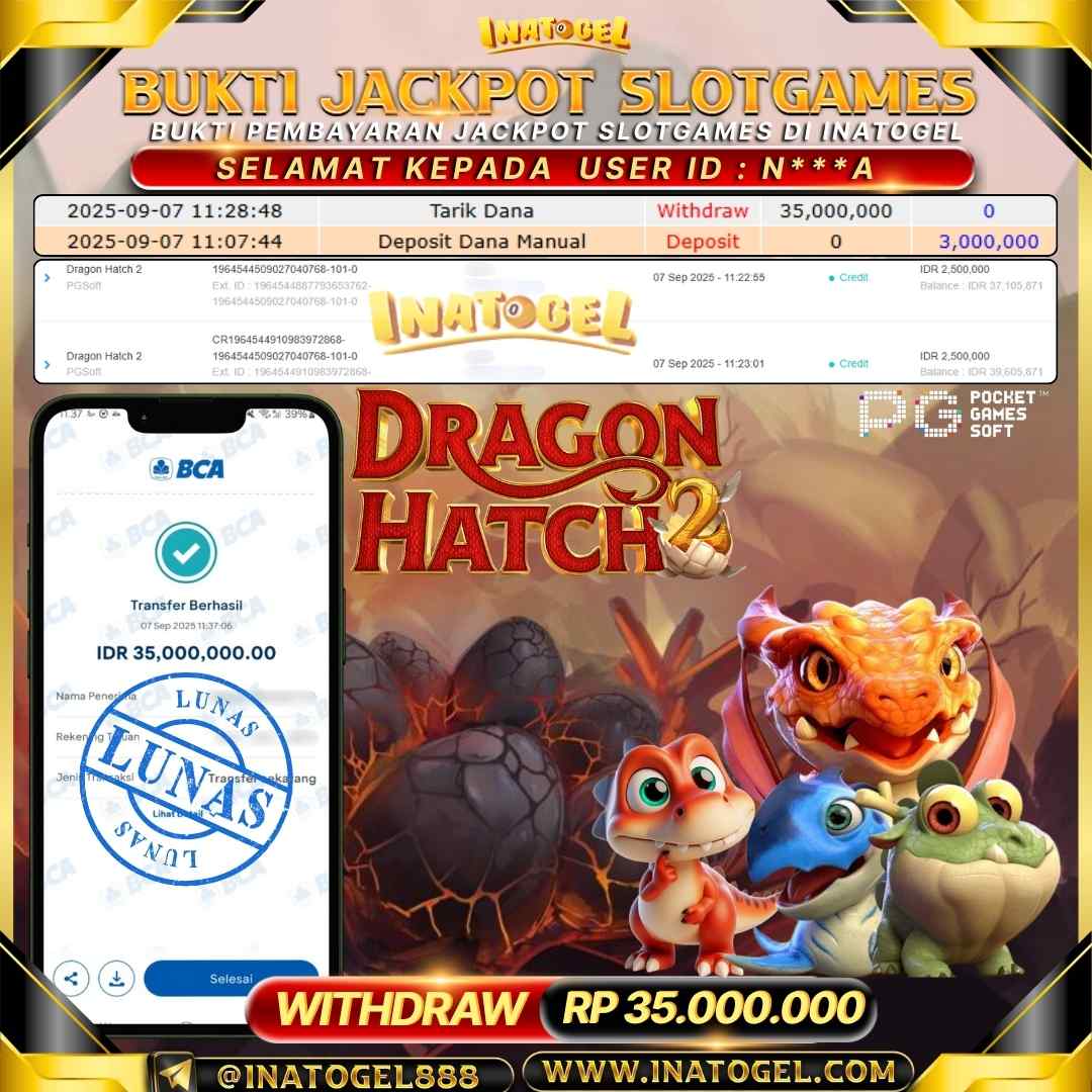 Inatogel Jackpot SlotGame Dragon Hatch 2 Rp35,000,000