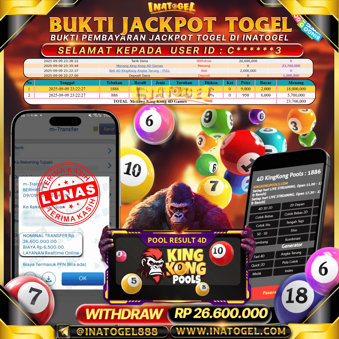 Inatogel Jackpot Togel KingKong 4D Rp26,600,000