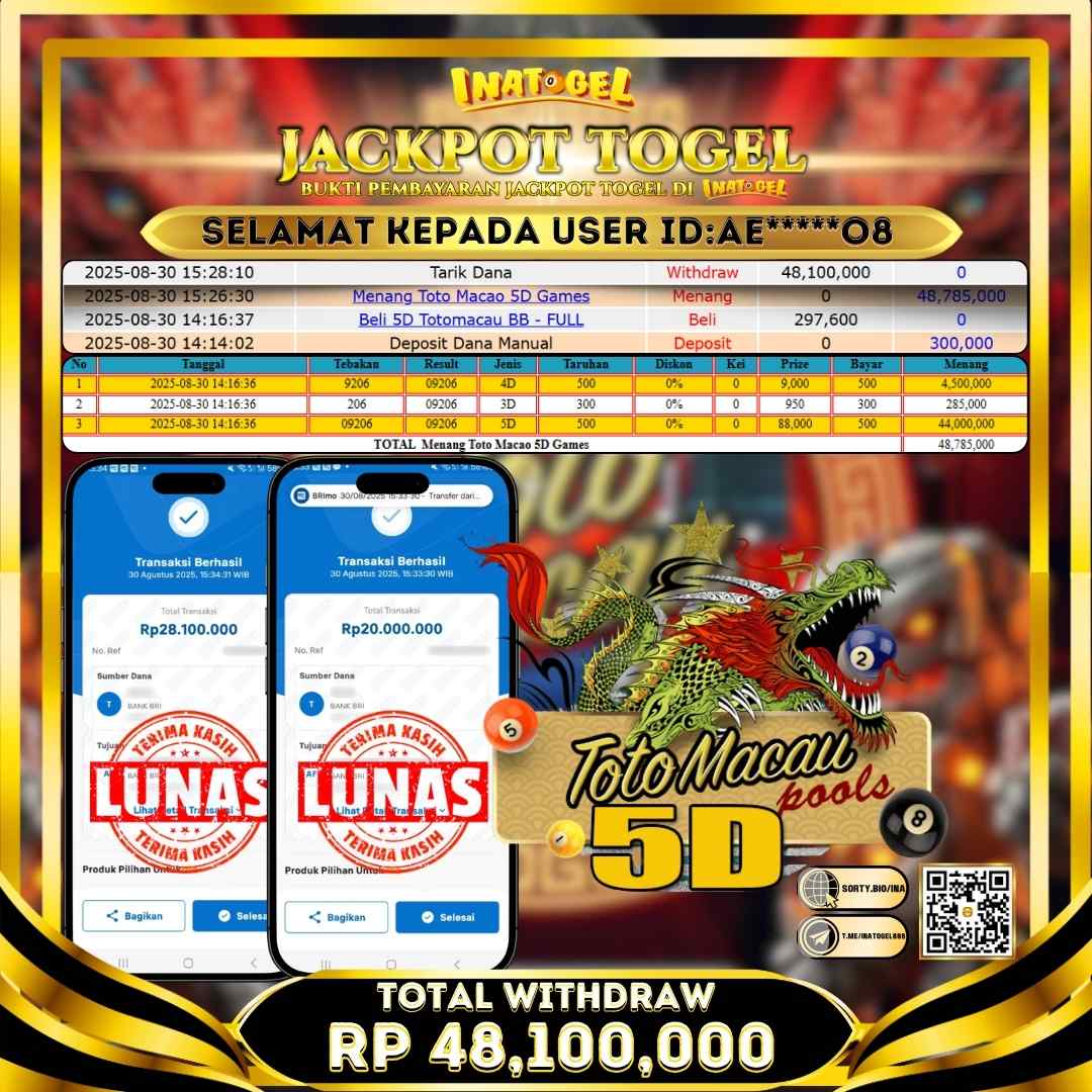 Inatogel Jackpot TOGEL TOTO MACAU 5D Rp48,100,000