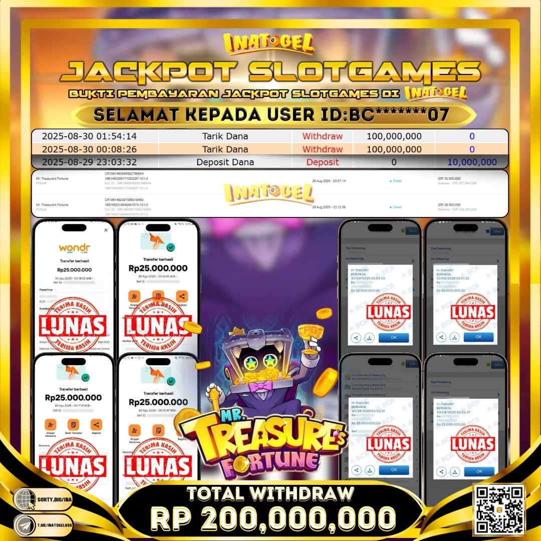 Inatogel Jackpot SlotGame Mr. Treasure's Fortune Rp200,000,000