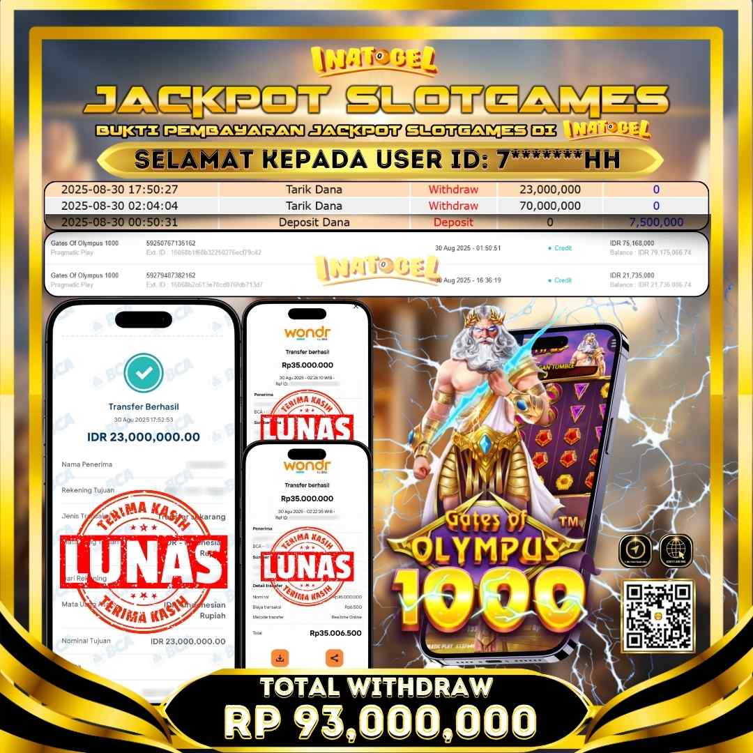 Inatogel Jackpot SlotGame Gates Of Olympus 1000 Rp93,000,000