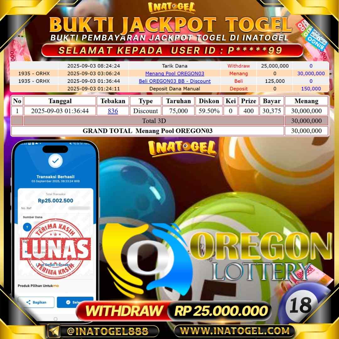 Inatogel Jackpot Togel OREGON03 Rp25,000,000