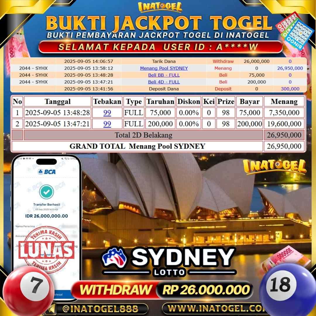 Inatogel Jackpot Togel SYDNEY Rp26,000,000