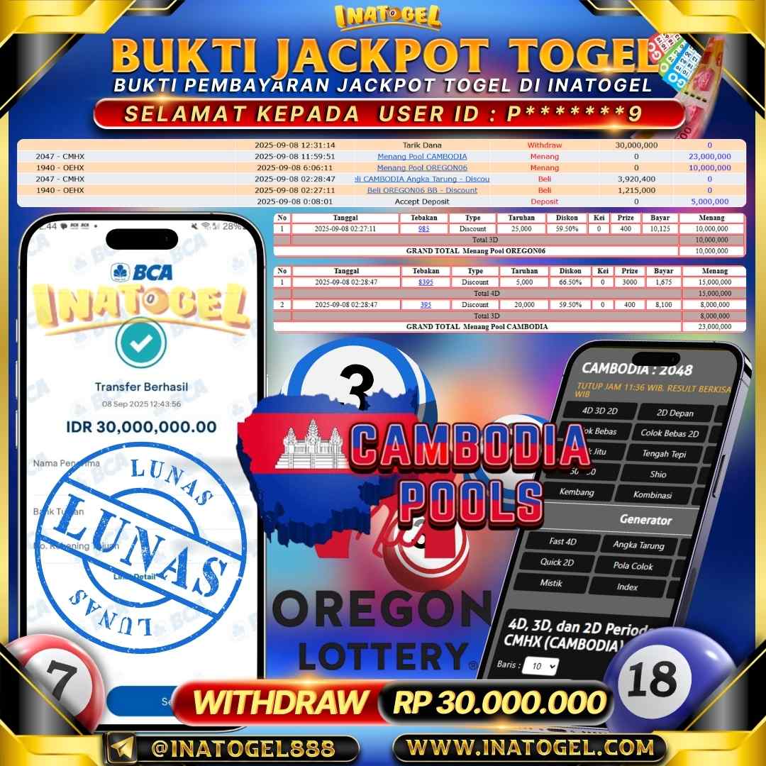 Inatogel Jackpot Togel Cambodia & Oregon Rp30,000,000