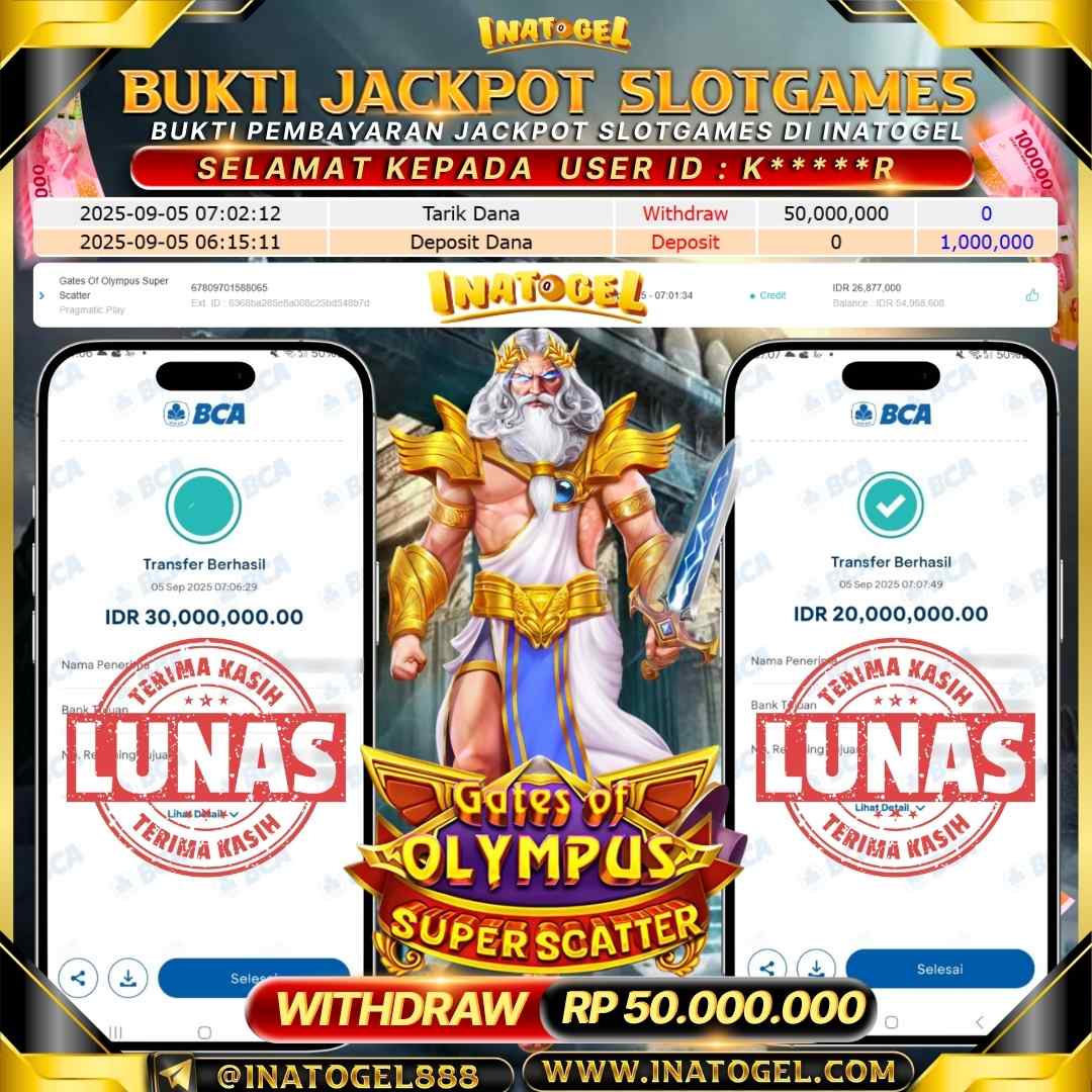 Inatogel Jackpot SlotGame Gates Of Olympus Super Scatter Rp50,000,000