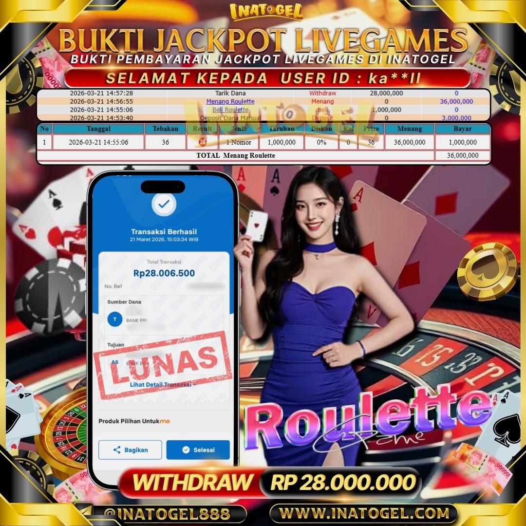 Inatogel Jackpot Live Game Roulette Rp 28,000,000