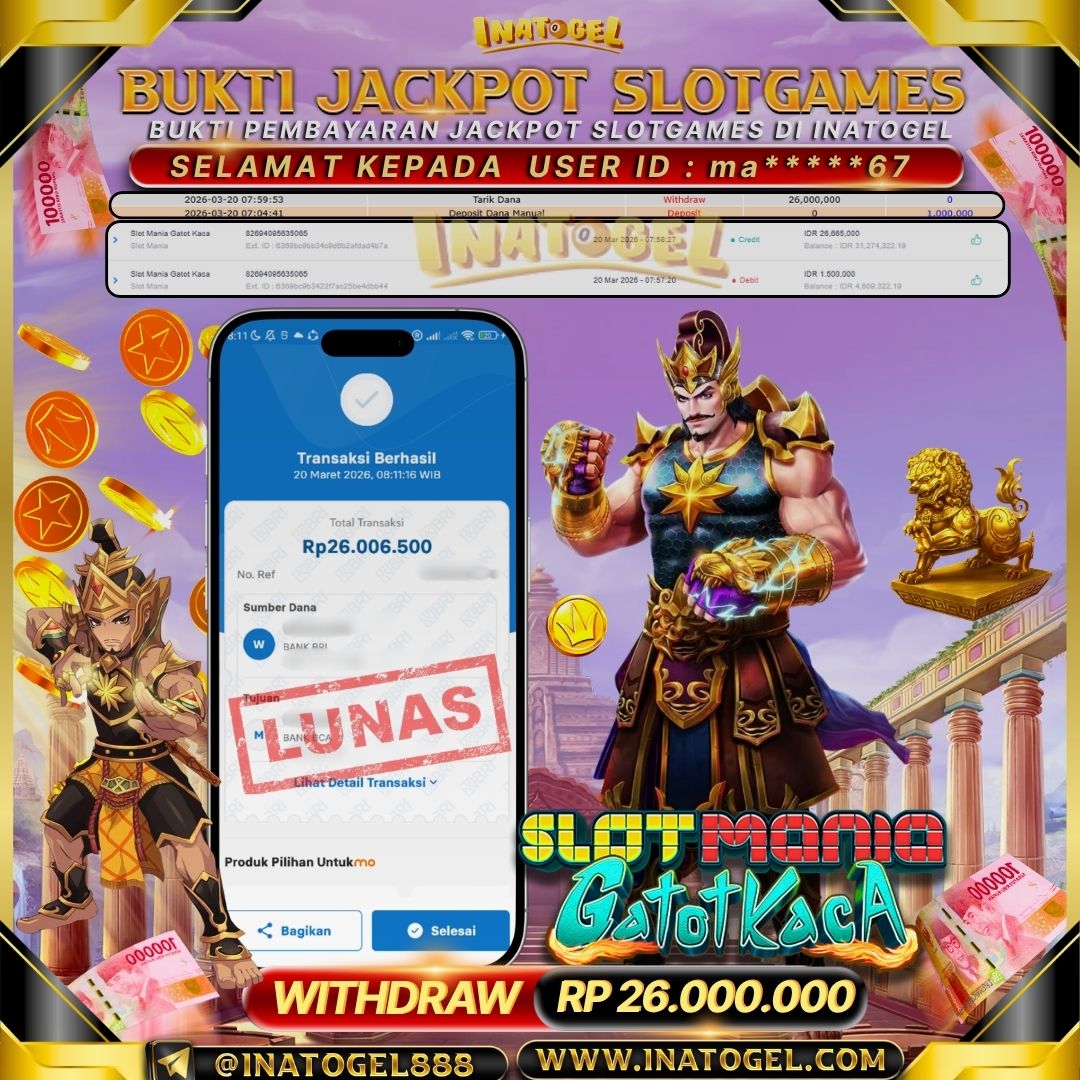 Inatogel Jackpot Slot Mania Gatot Kaca Rp26,000,000