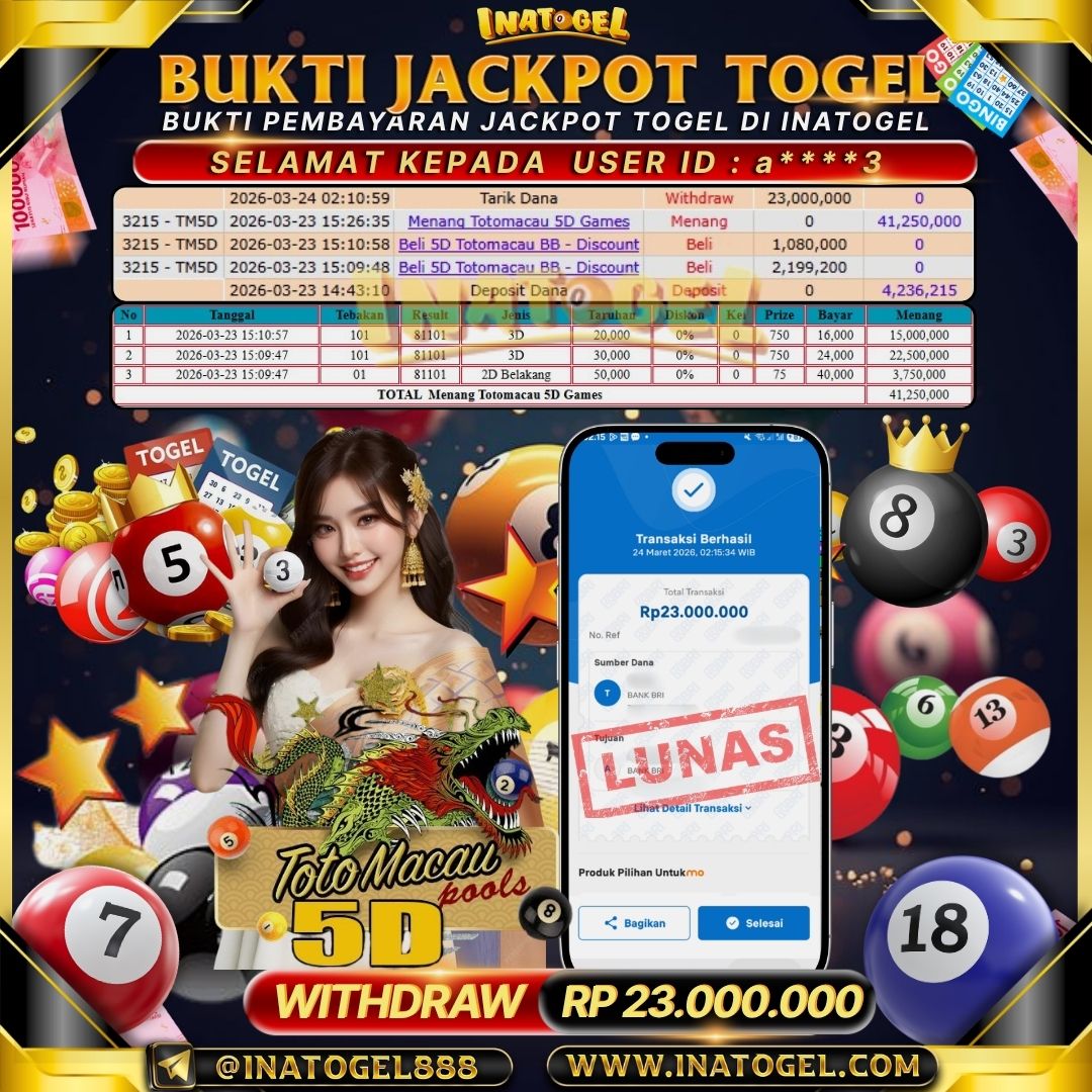 Inatogel Jackpot Togel Totomacau 5D Rp23,000,000