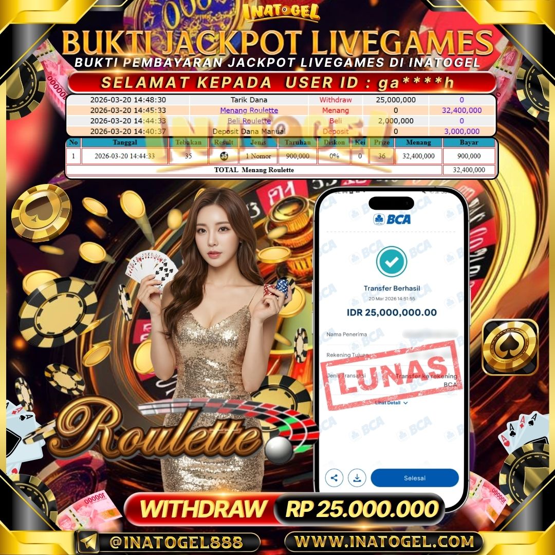 Inatogel Jackpot Live Game Roulette Rp 25,000,000