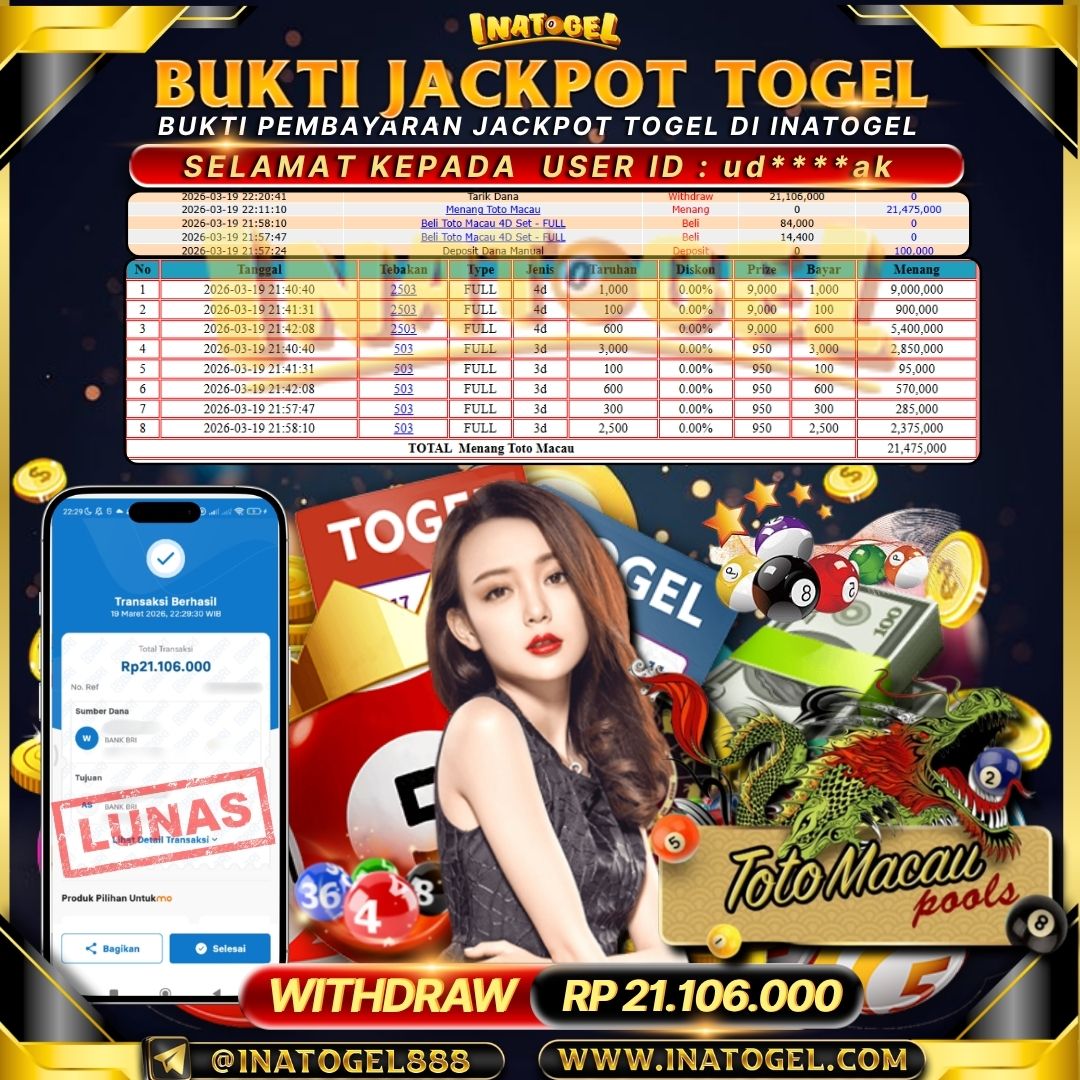 Inatogel Jackpot Togel TOTOMACAU Rp21,106,000