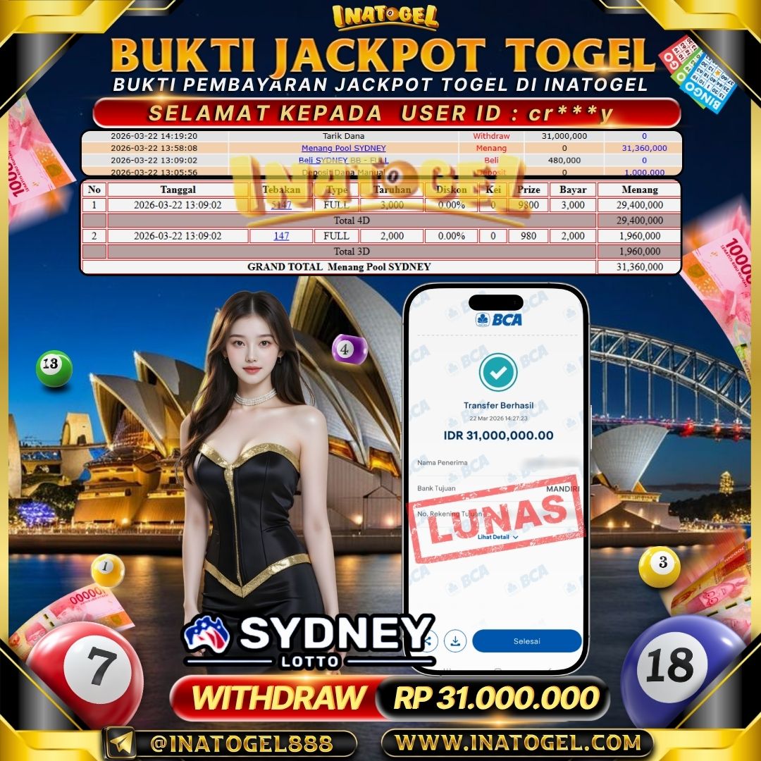 Inatogel Jackpot Togel Sydney Lotto Rp 31,000,000
