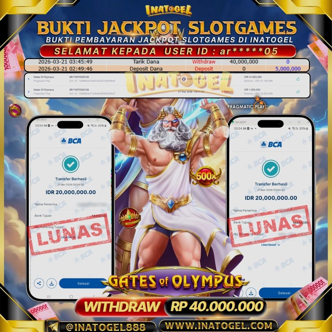 Inatogel Jackpot Slot Games Gates Of Olympus Rp 40,000,000