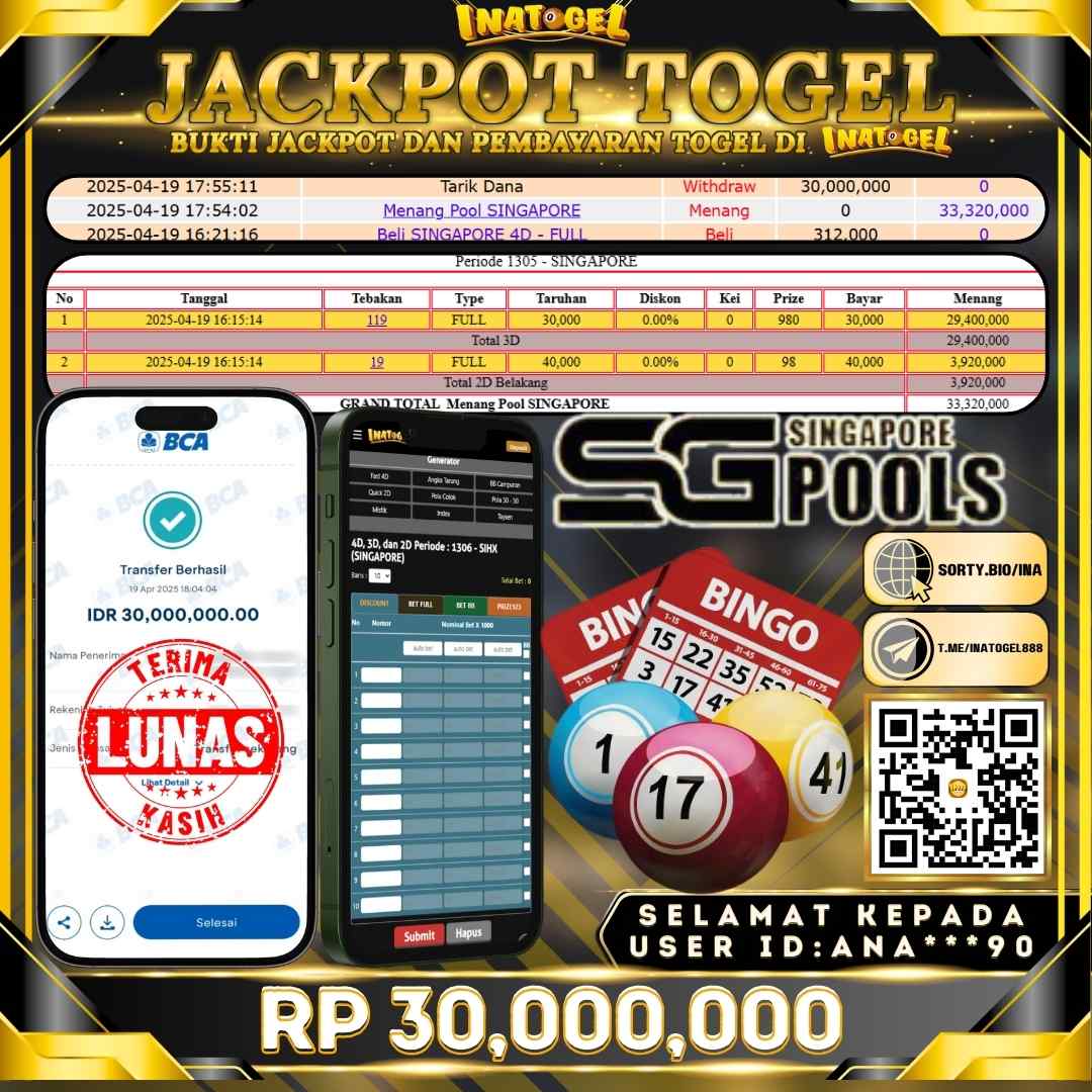 Inatogel Jackpot TOGEL SINGAPORE POOL Rp30,000,000