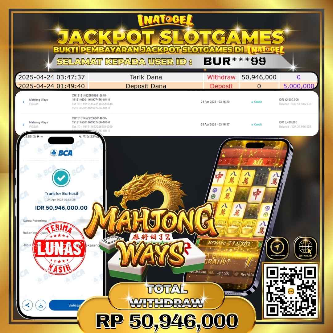 Inatogel Jackpot Slot Game Mahjong Ways Rp50,946,000