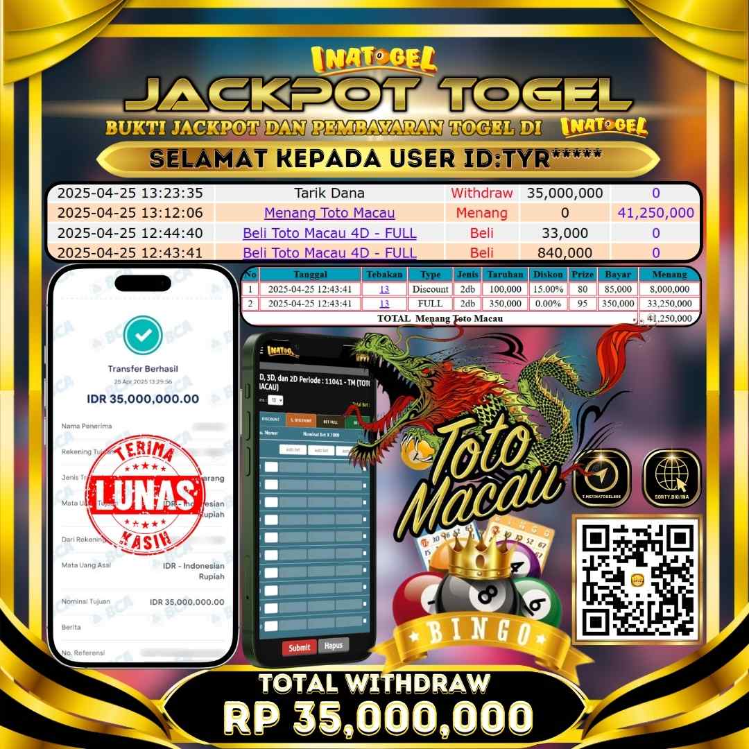 Inatogel Jackpot TOGEL TOTO MACAU 4D Rp35,000,000