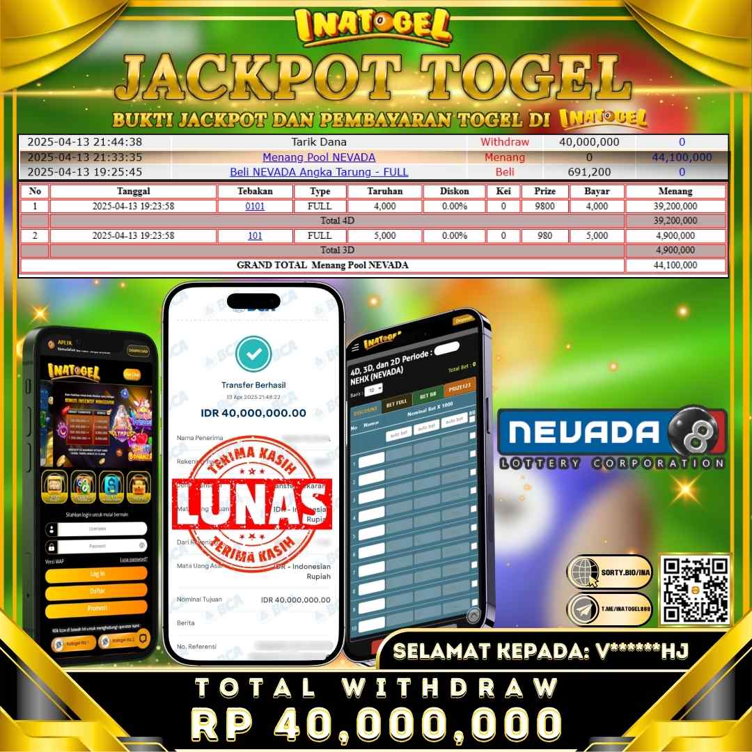Inatogel Jackpot Togel NEVADA POOL Rp40,000,000