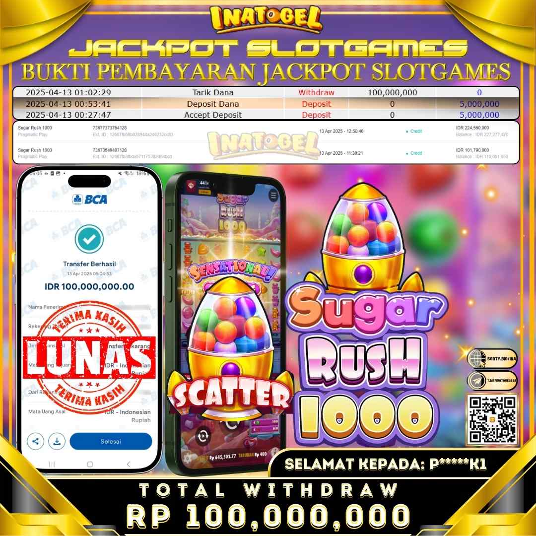 Inatogel Jackpot Slot Game Sugar Rush 1000 Rp100,000,000