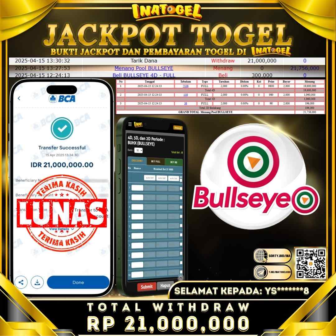 Inatogel Jackpot Togel BULLSEYE POOL Rp21,000,000