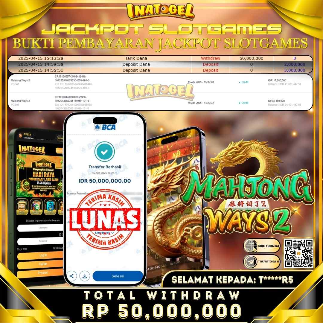 Inatogel Jackpot Slot Game Mahjong Ways 2 Rp50,000,000